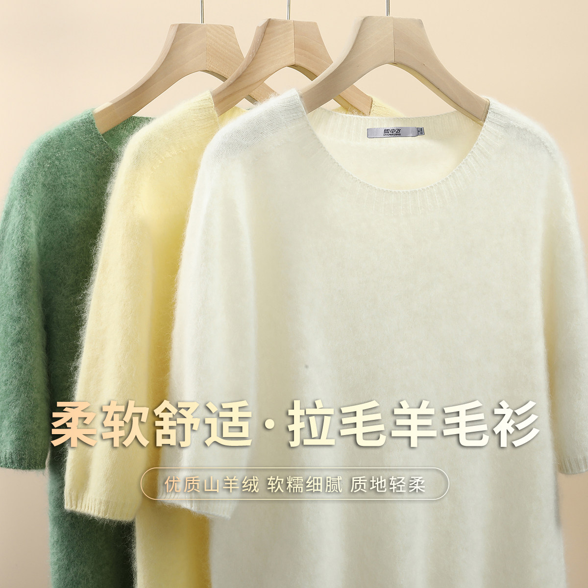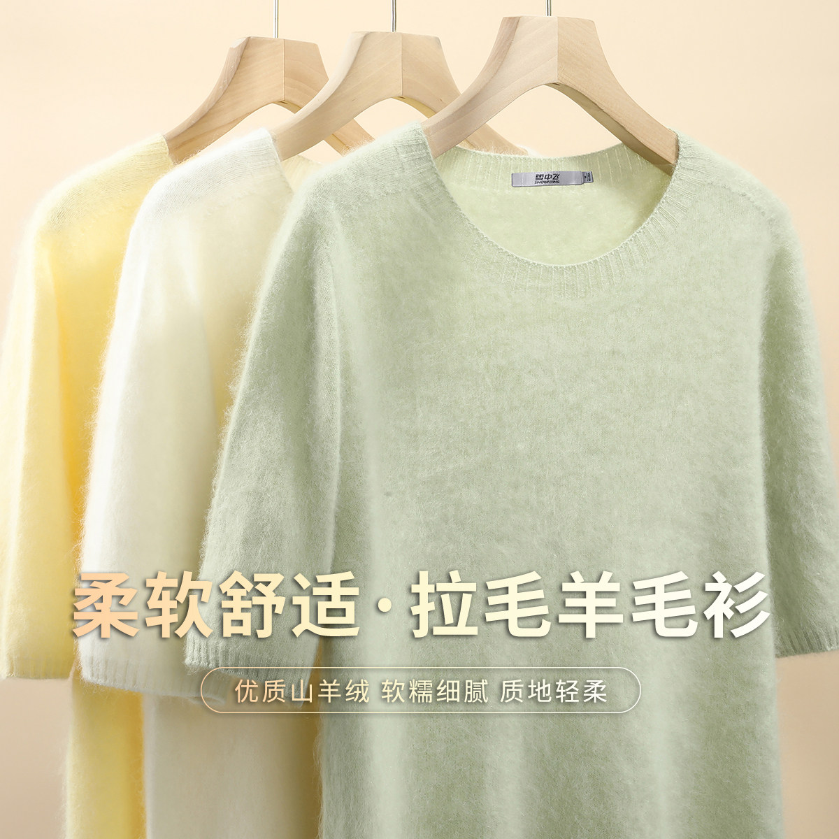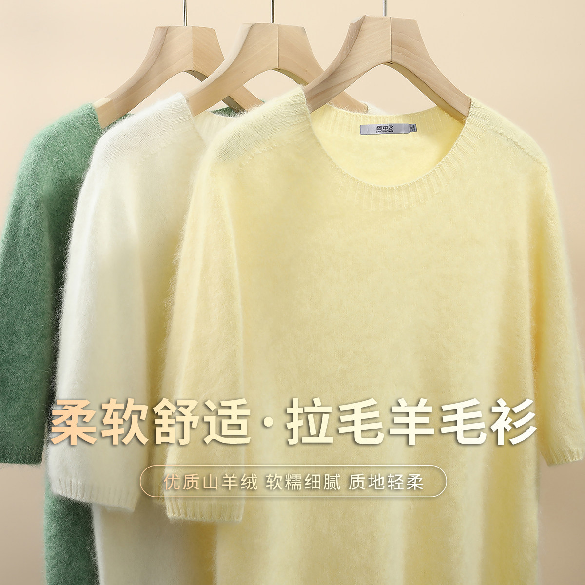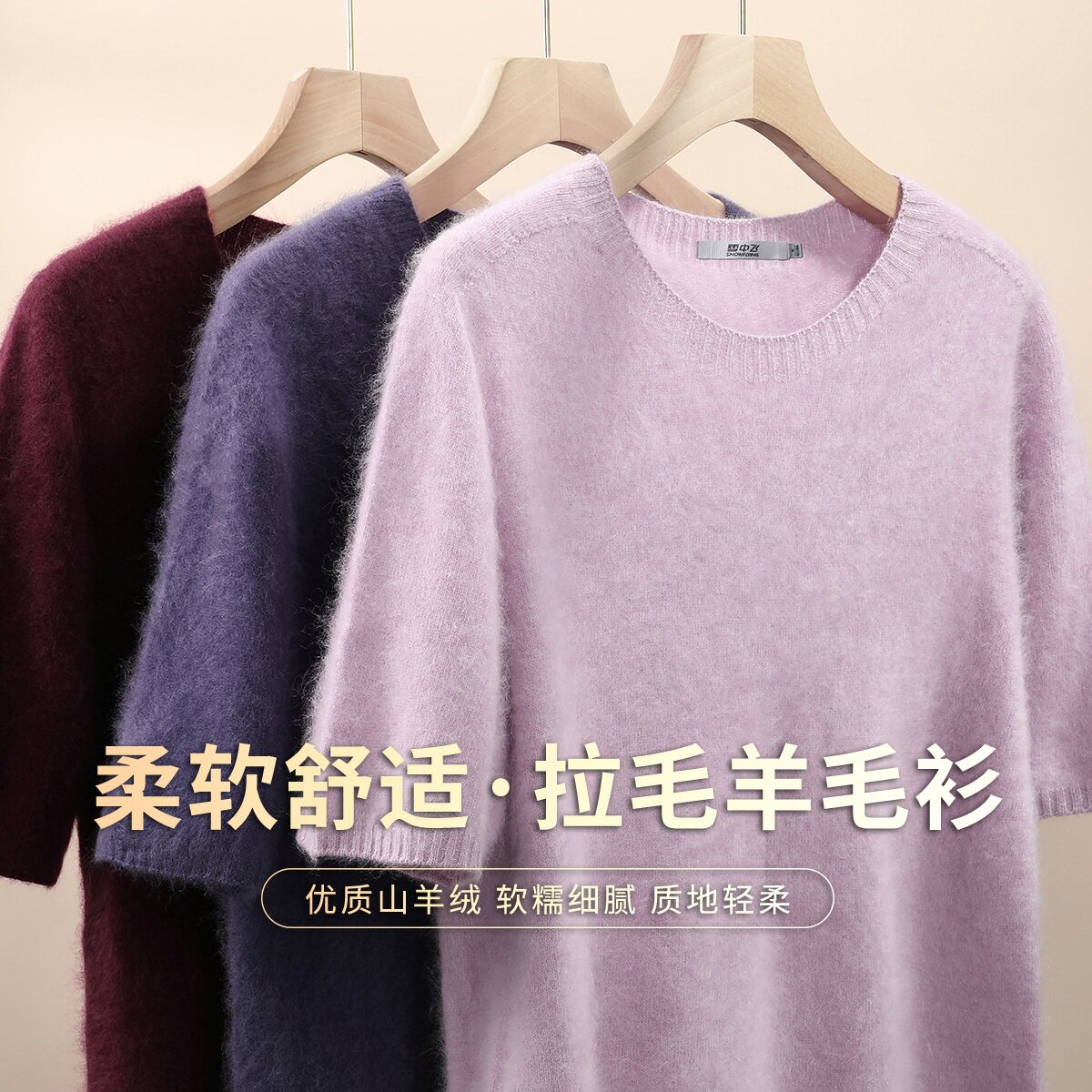雪中飞冬新款【95%绵羊毛】圆领长袖拉毛羊毛衫女士打底纯色软糯W