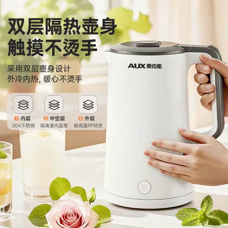奥克斯电热水壶家用煮水壶开水壶304不锈钢全自动智能新款烧水壶