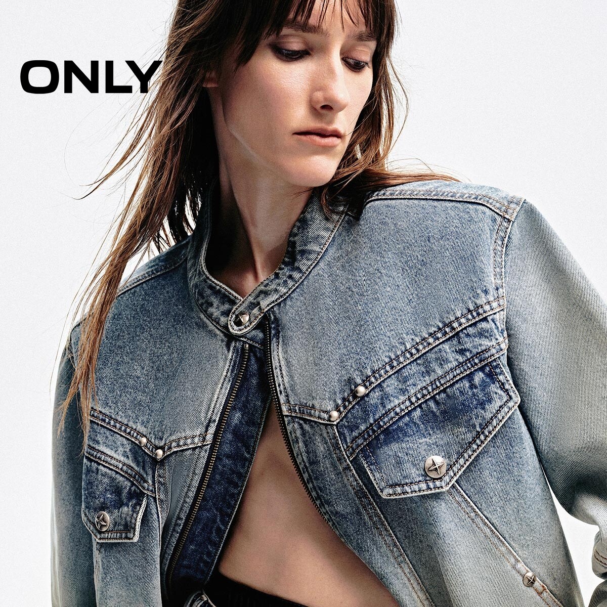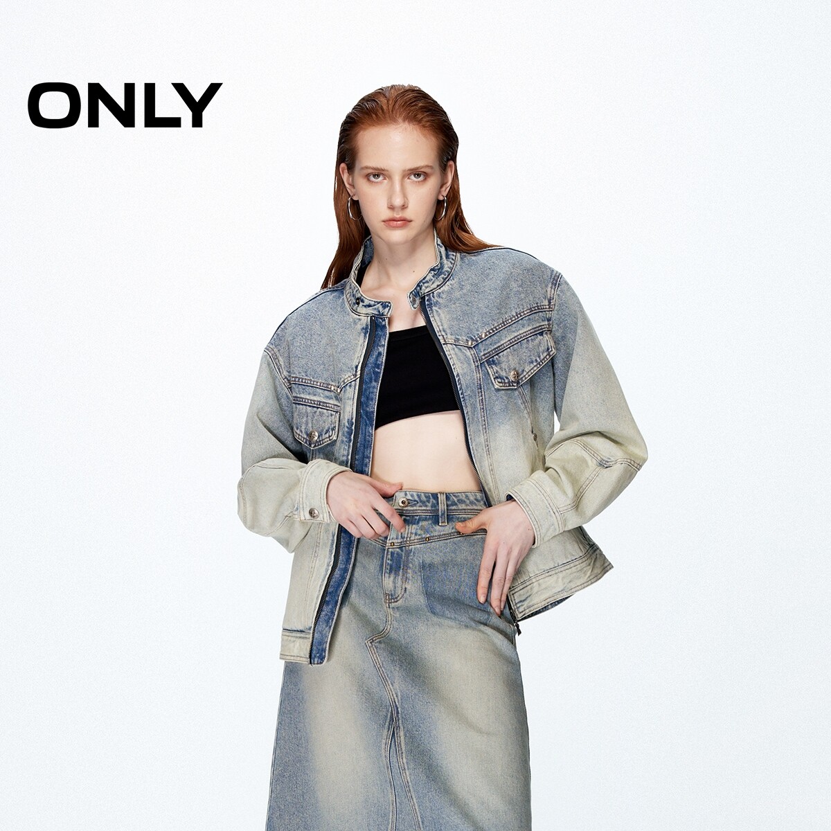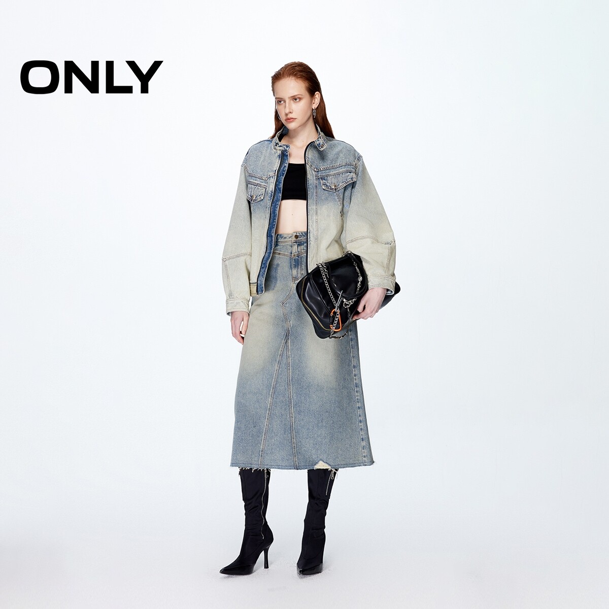 【ONLY奥莱】春季新款时尚百搭渐变水洗落肩宽松牛仔外套女