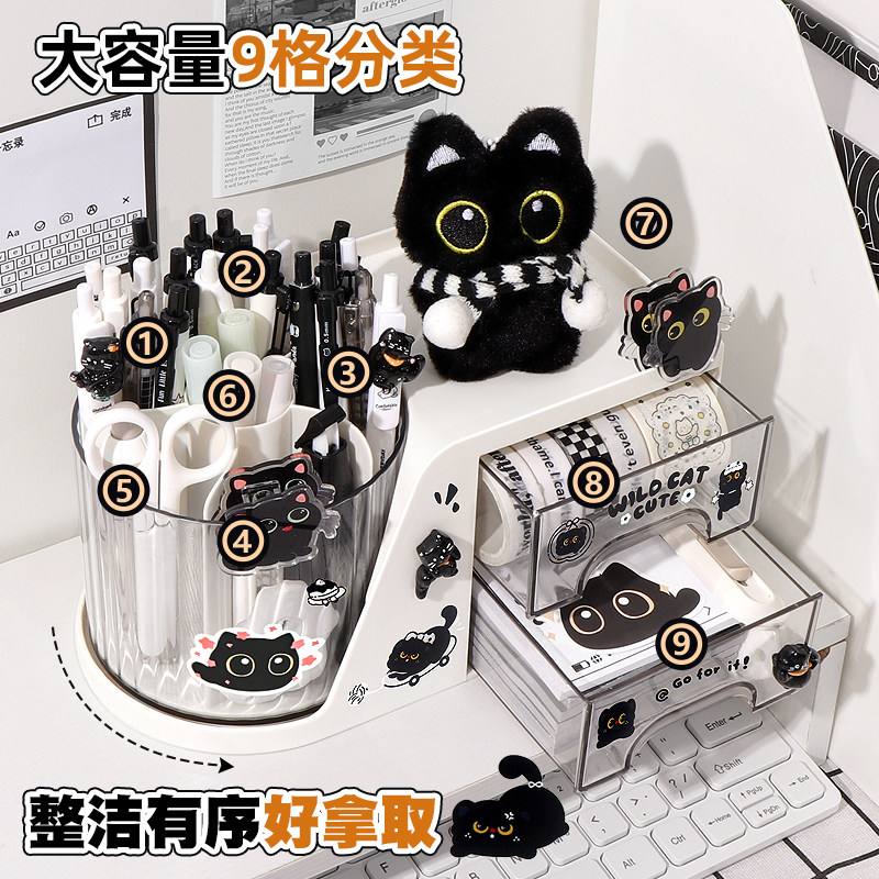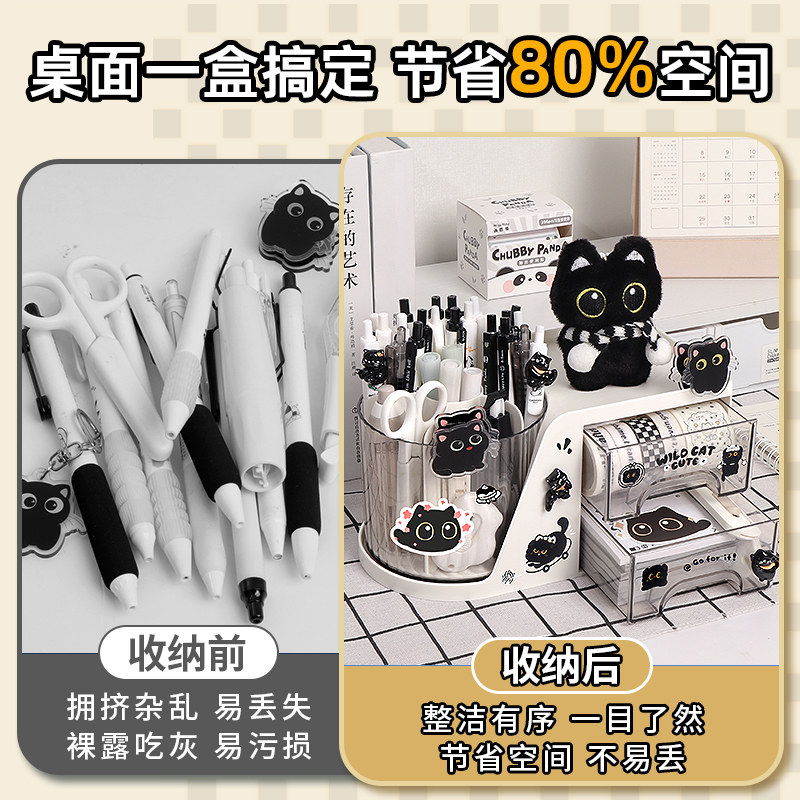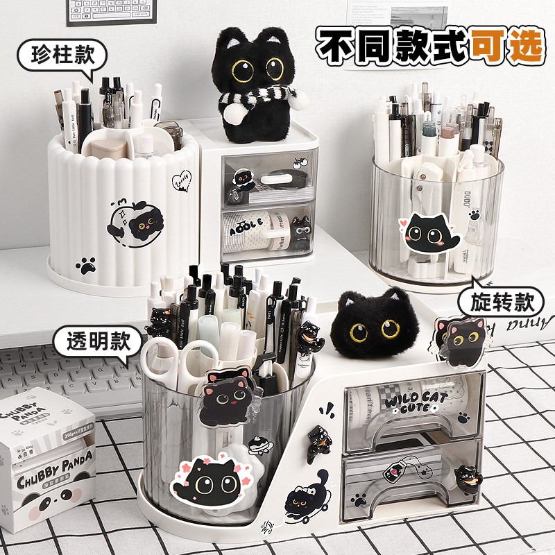 可爱喵~笔筒收纳盒学生桌面儿童女孩旋转大容量超大笔桶高颜值ins风创意可爱笔盒多功能男孩不占空间办公室用