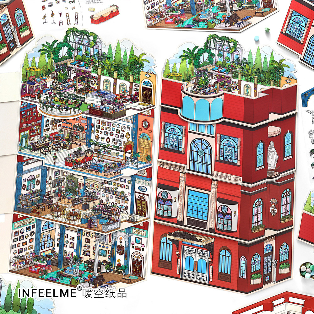 新款筑梦3d立体造景贴纸微缩场景合集本 大号版diy手工小屋手账贴儿童益智玩具素材贴画解压大版3D手账装饰贴