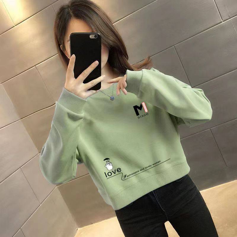 卫衣100%纯棉圆领短款女小个子春秋宽松显瘦百搭慵懒风高腰上衣A