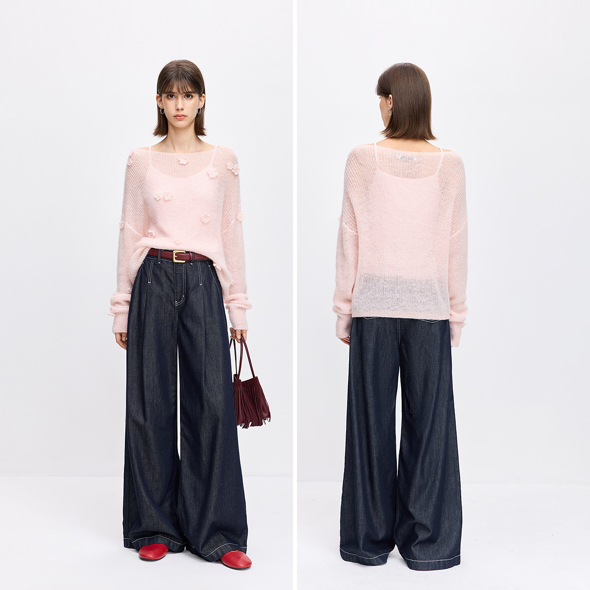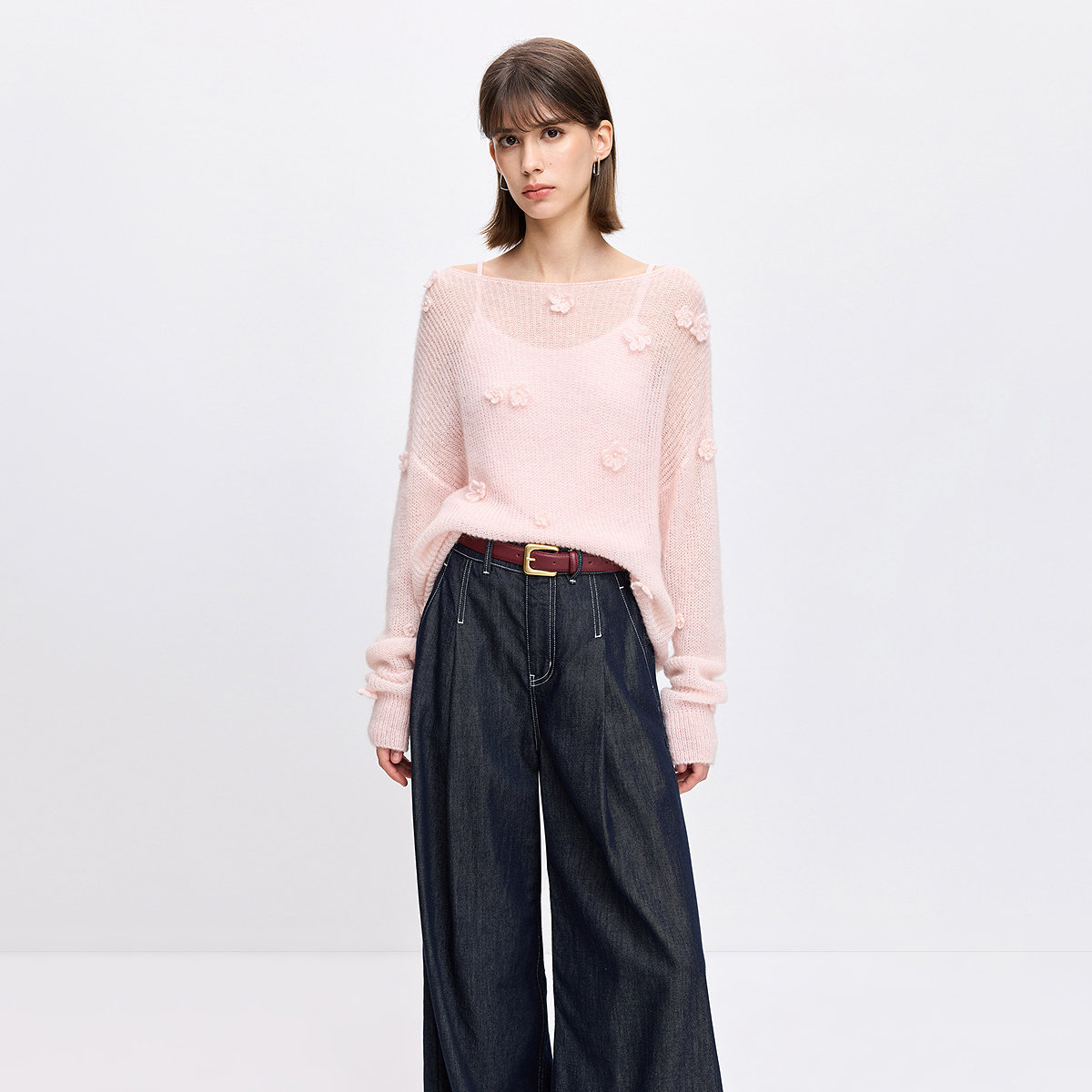 【商场同款】LILY2026春新款女装含羊毛马海毛钉珠套头针织衫毛衣