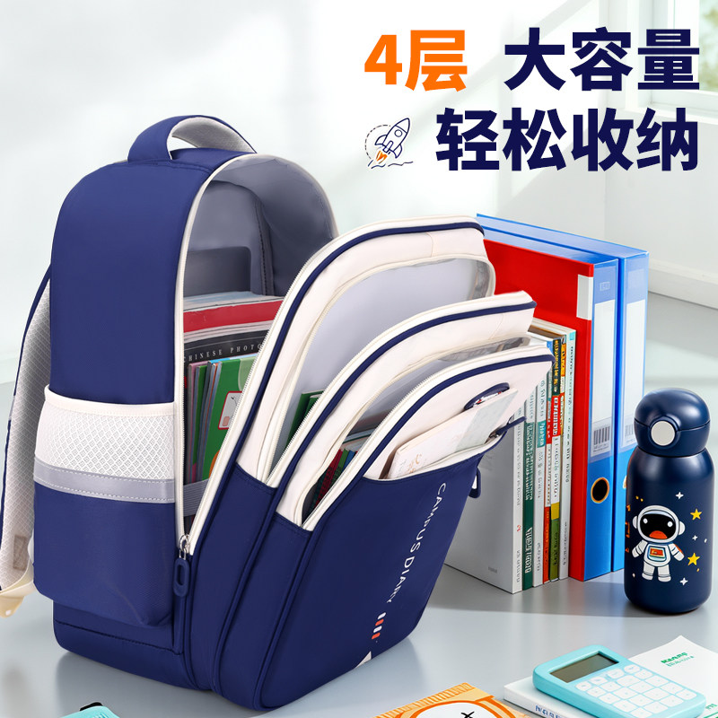 新款小学生多隔层轻便书包男女生低中高年级减负护脊儿童双肩背包大容量超轻收纳