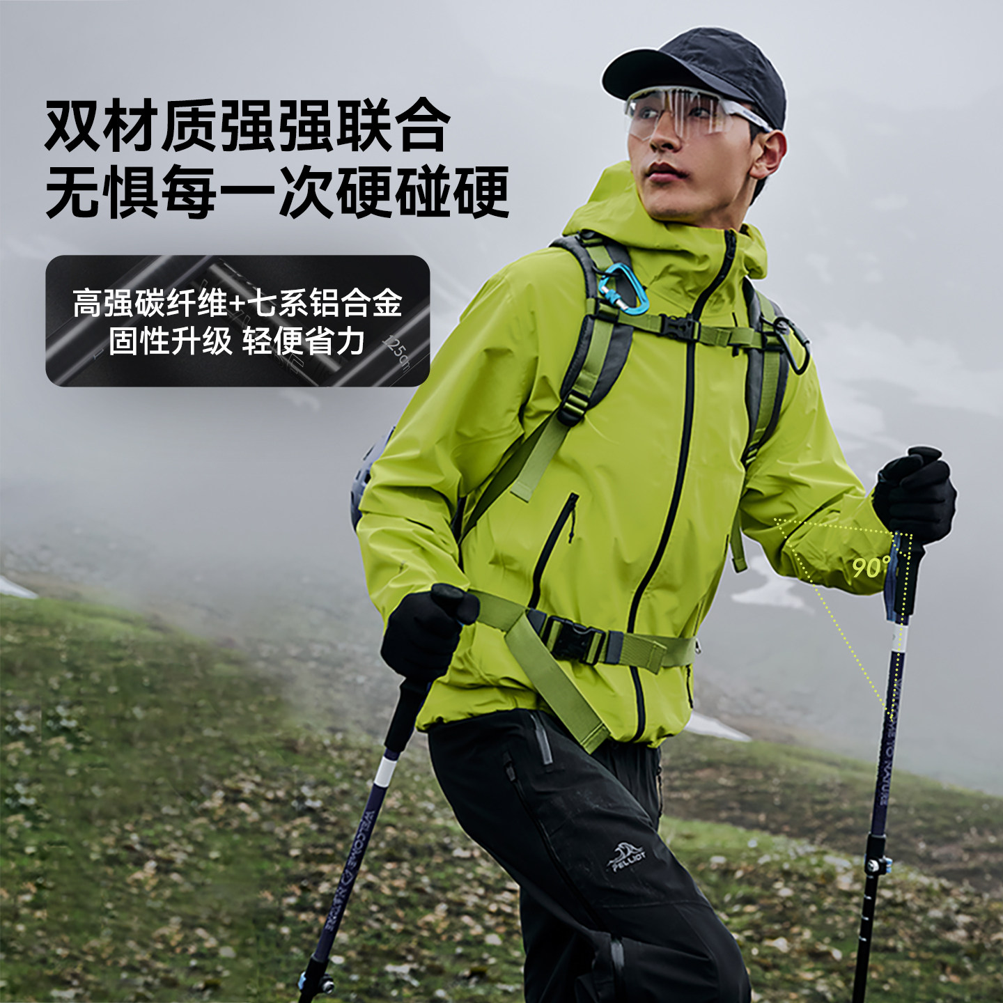 【羽翼】伯希和户外登山杖男碳纤维折叠手杖轻便专业徒步装备女款
