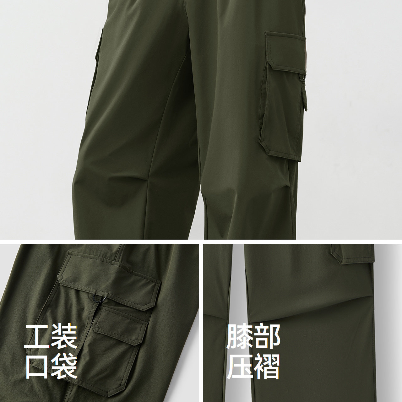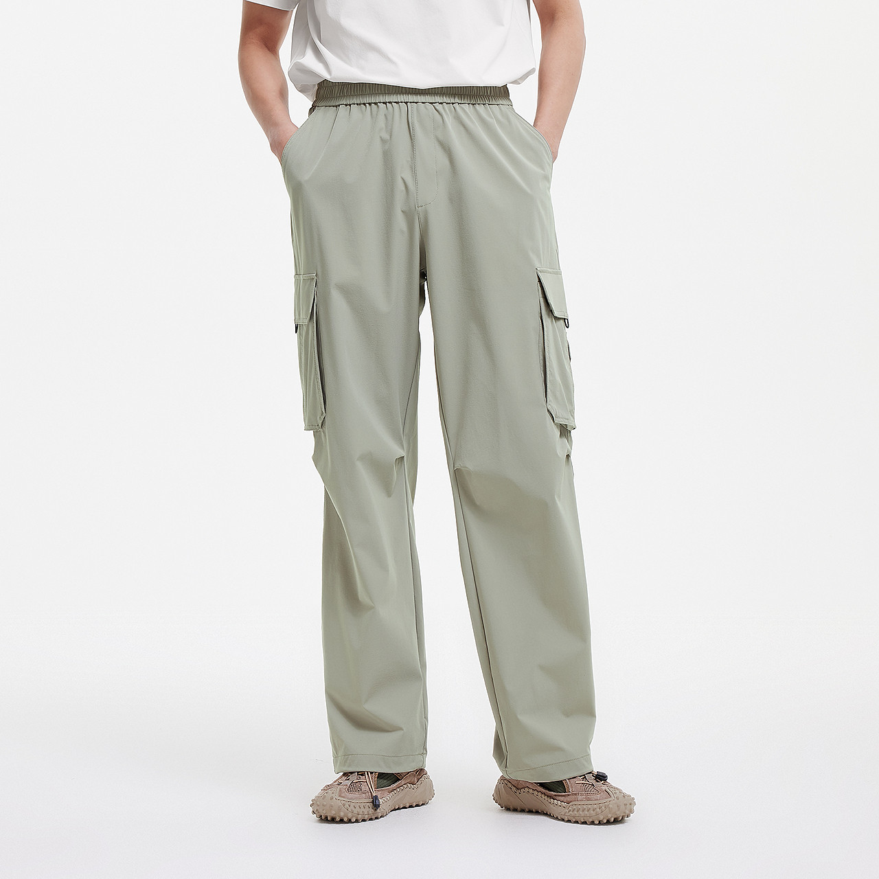 森马休闲裤男夏季速干凉感宽松直筒裤户外机能长裤纯色抽绳工装裤