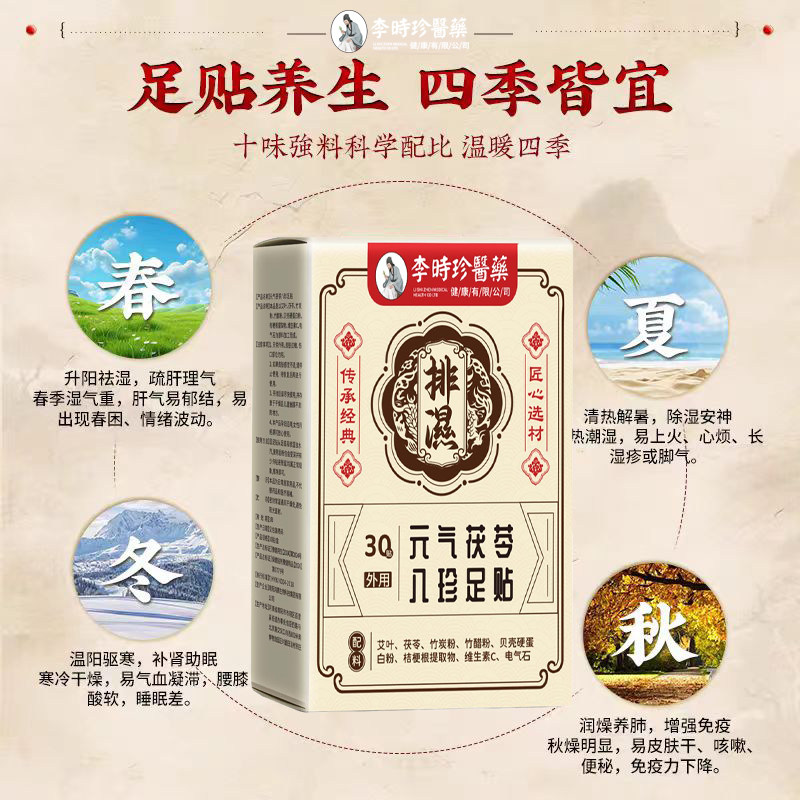 元气茯苓八珍足贴老北京艾草脚底贴艾叶暖脚祛湿官方正品旗舰店