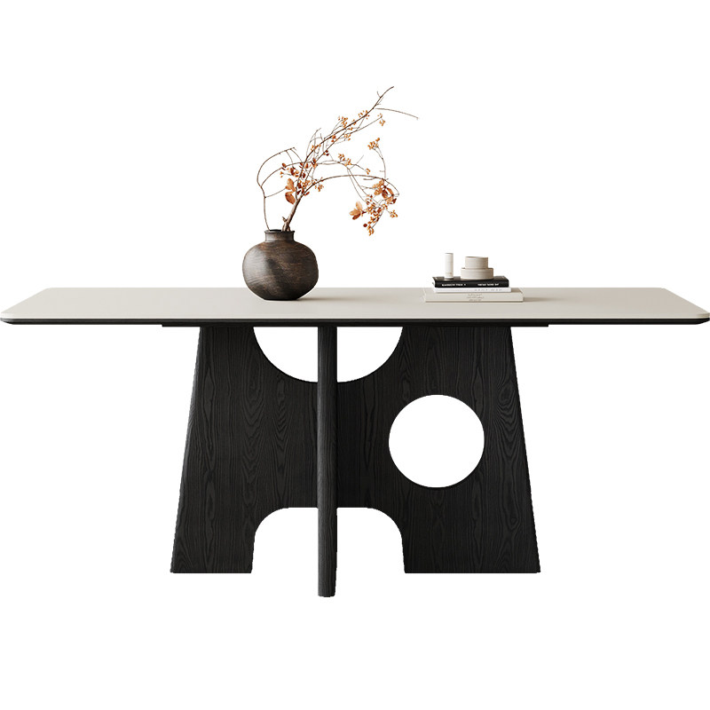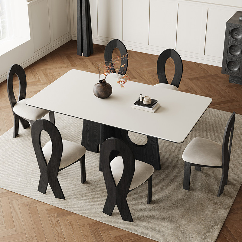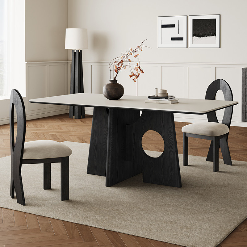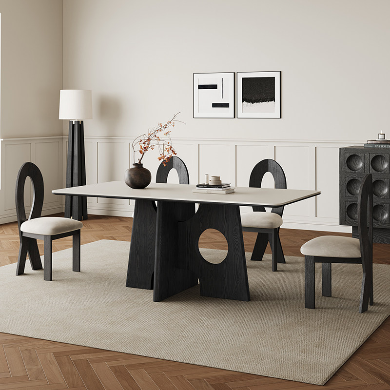 长方形岩板餐桌法式复古风轻奢高端2025新款黑色进口中古实木餐桌