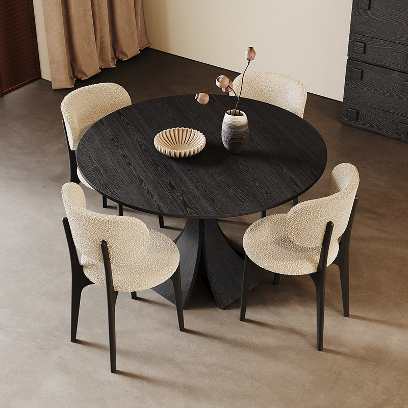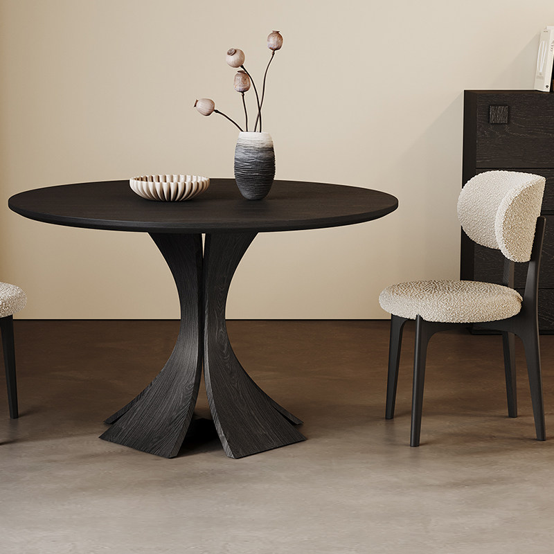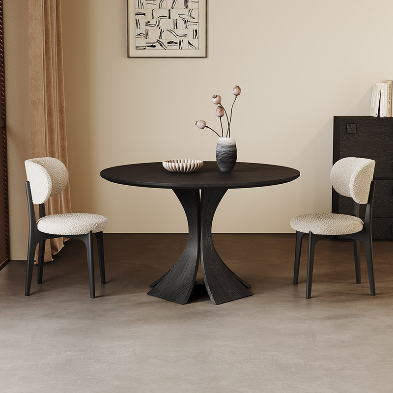 法式复古风实木圆桌家用小户型1米洽谈小圆桌窈窕黑色纯实木餐桌
