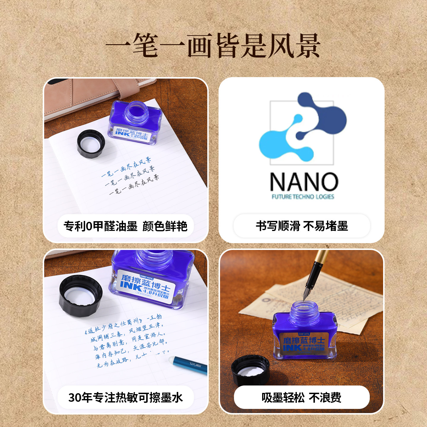 风景热敏可擦钢笔墨水晶蓝墨蓝黑色磨擦蓝博士小学生练字墨囊升级版大容量顺滑流畅摩易擦FSC982