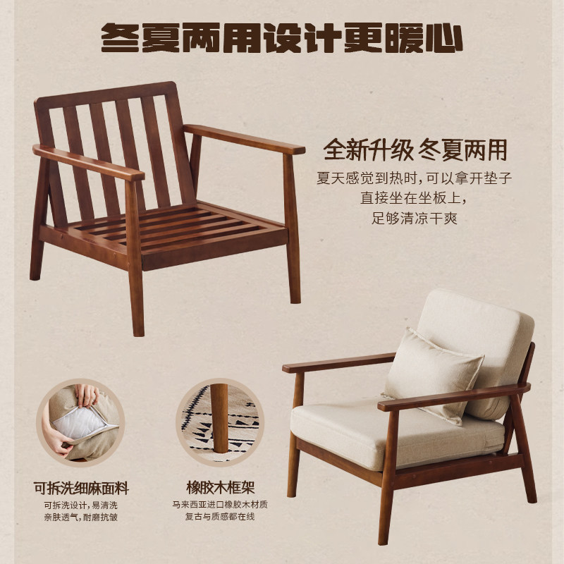 政府补贴新中式实木单人沙发椅客厅躺椅胡桃木椅子单椅阳台休闲椅