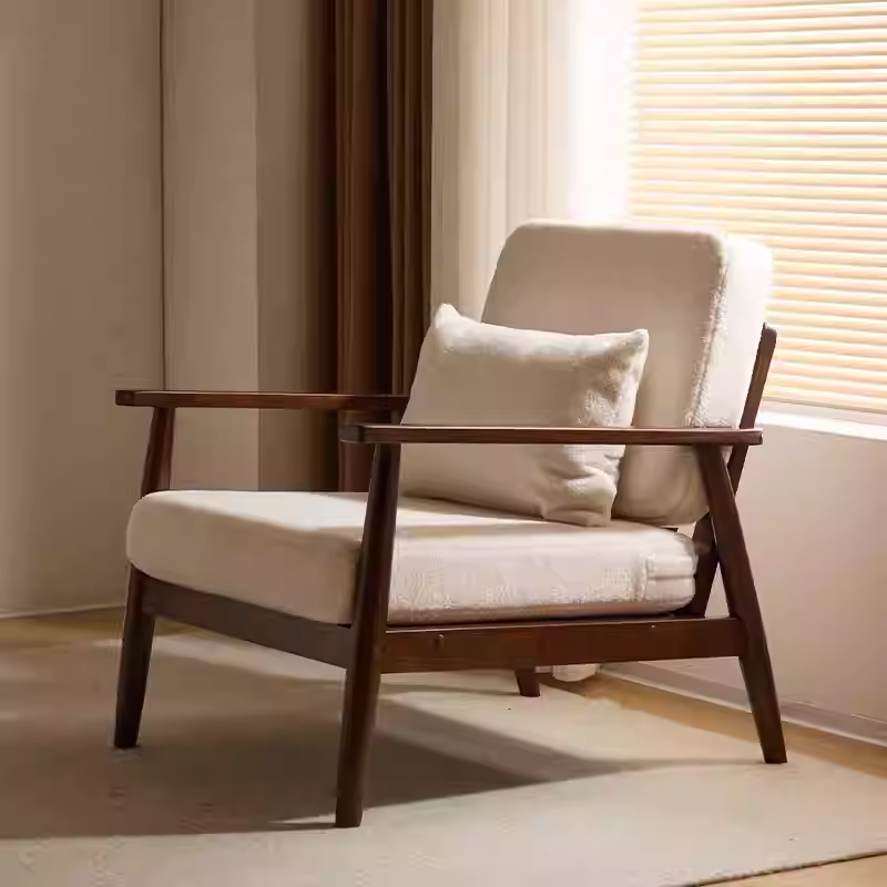 单人位沙发椅子客厅实木阳台休闲椅北欧胡桃木色家用小户型躺椅