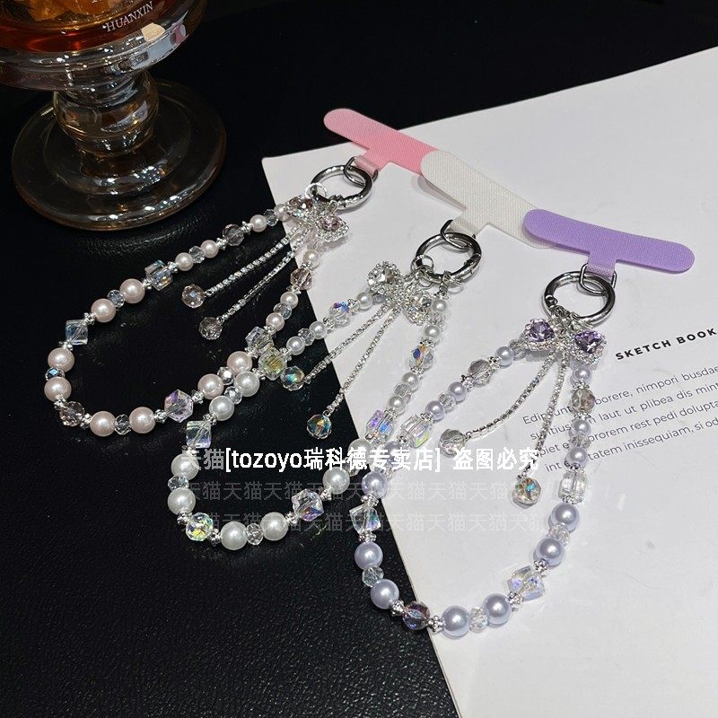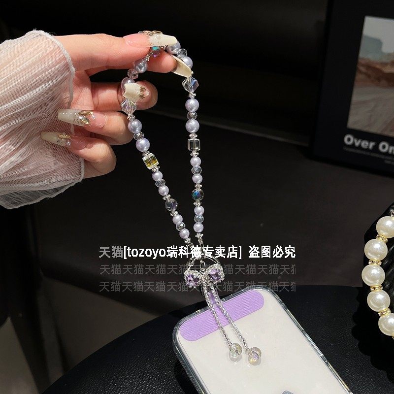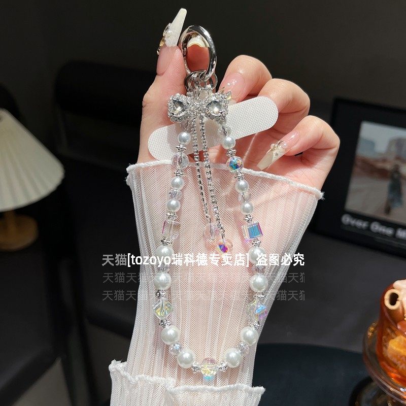 水钻流苏手机链精致公主气质仙女款高端珍珠水晶手腕挂链蝴蝶结闪钻串珠手链腕带防丢挂绳链条钥匙包包防丢壳