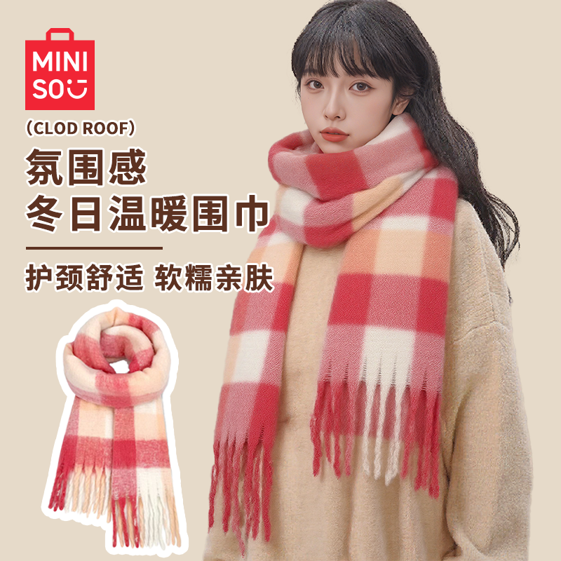 MINISO名创优品围巾男女冬季新款日系氛围感礼物加厚保暖披肩围脖