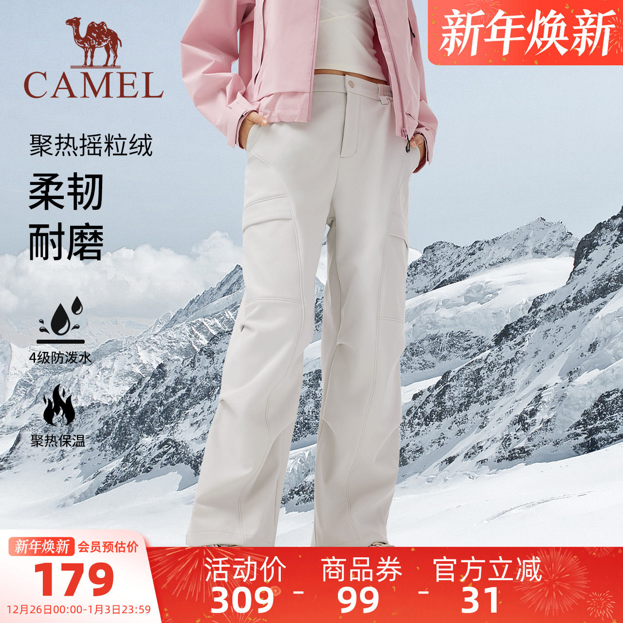 骆驼女装休闲裤加绒保暖2025秋冬新款户外软壳裤防泼水裤子运动裤