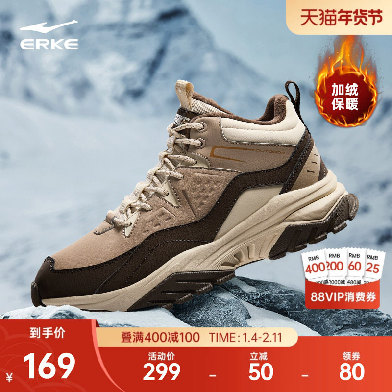 鸿星尔克暖阳2保暖棉鞋加绒休闲鞋男防滑冬季新款高帮加厚运动鞋