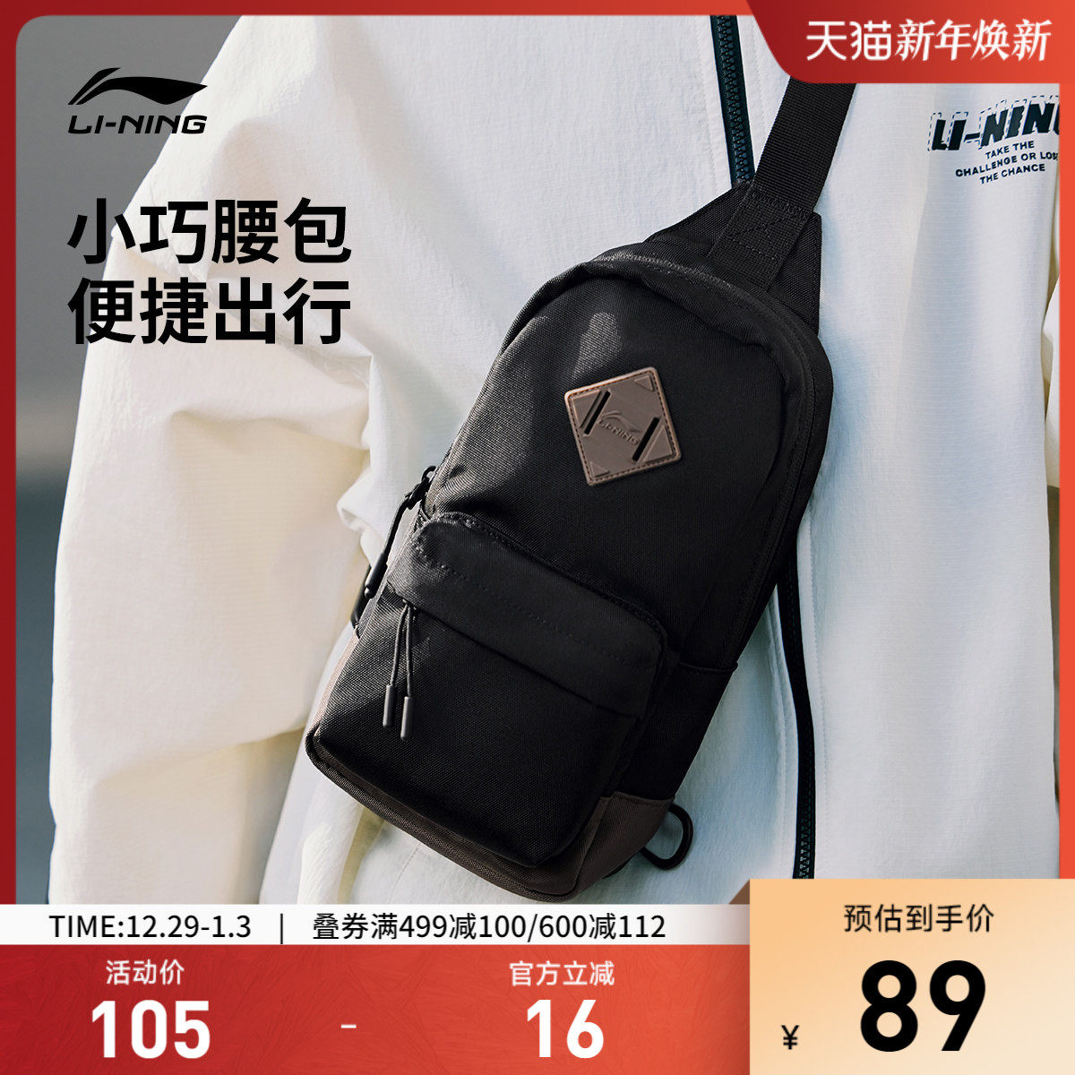李宁单肩包男女同款休闲学生户外出游便携通勤斜挎包百搭运动挎包