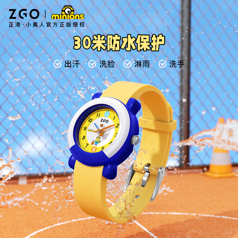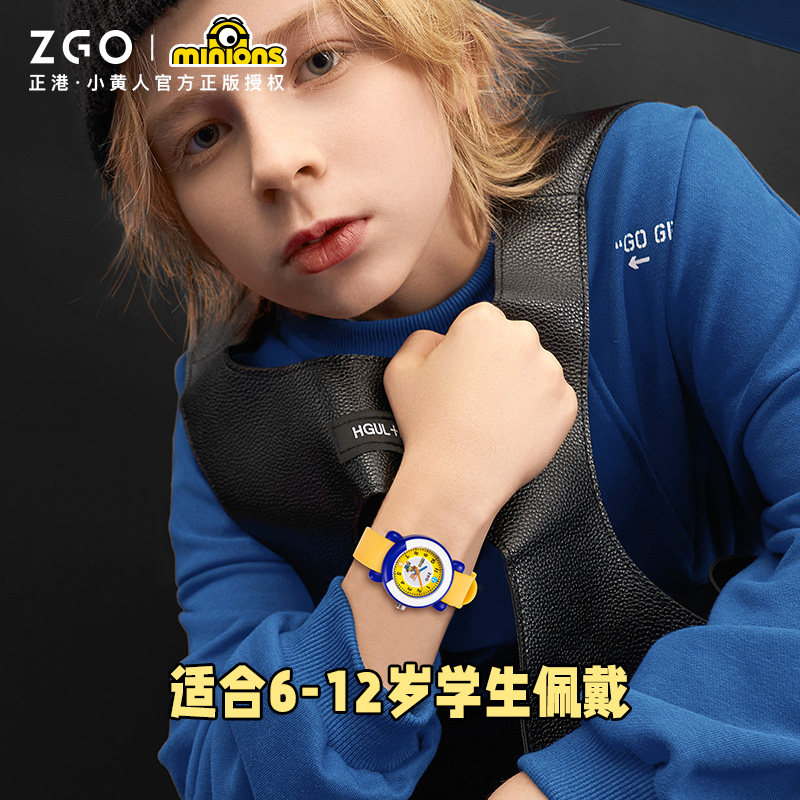 正港ZGOx小黄人手表儿童男生青少年学生小朋友防水运动指针表男孩