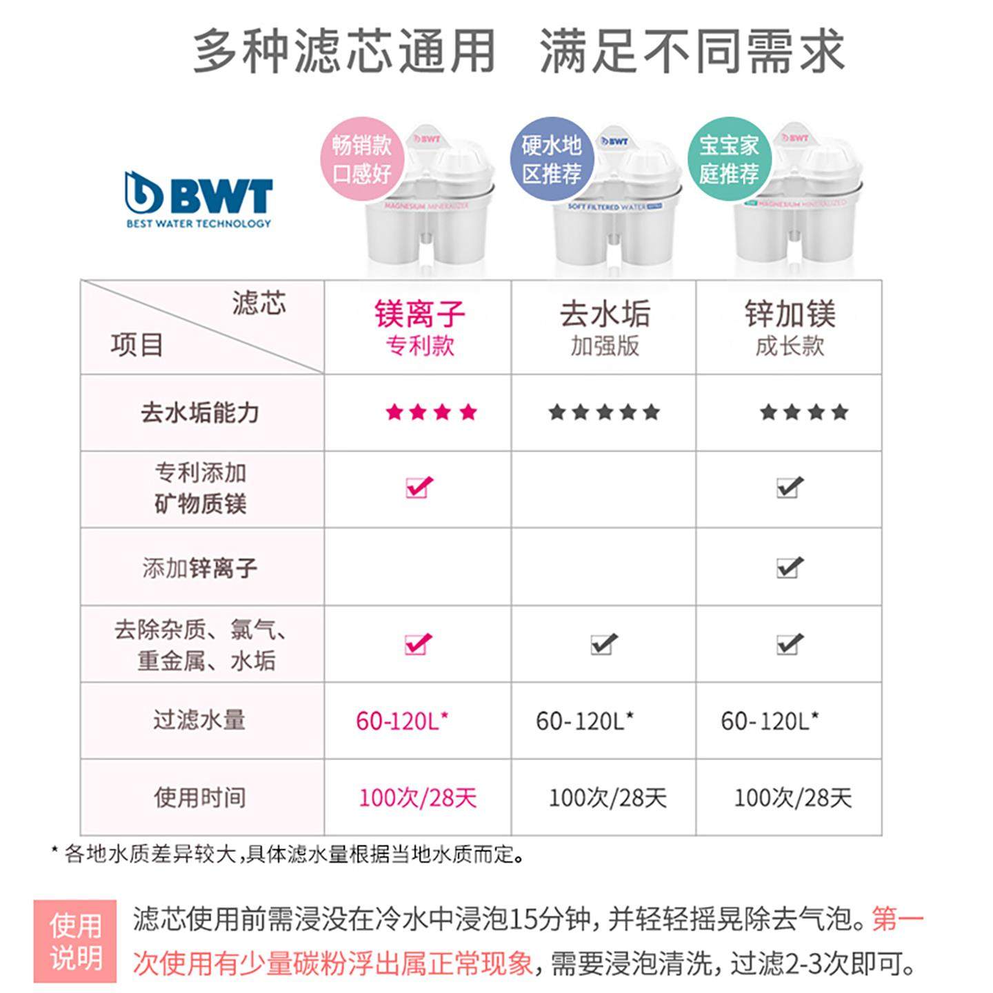 bwt滤芯德国倍世净水壶过滤壶滤芯家用净水器通用滤芯进口矿化芯