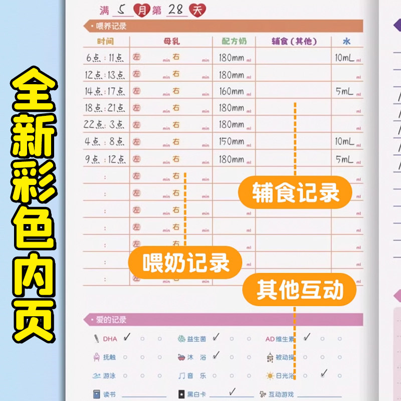 新生婴儿喂养计划本每日作息母乳辅食排便睡眠记录本月嫂喂奶奶粉宝宝喝吃奶量哺乳笔记本母婴护理生活日志本