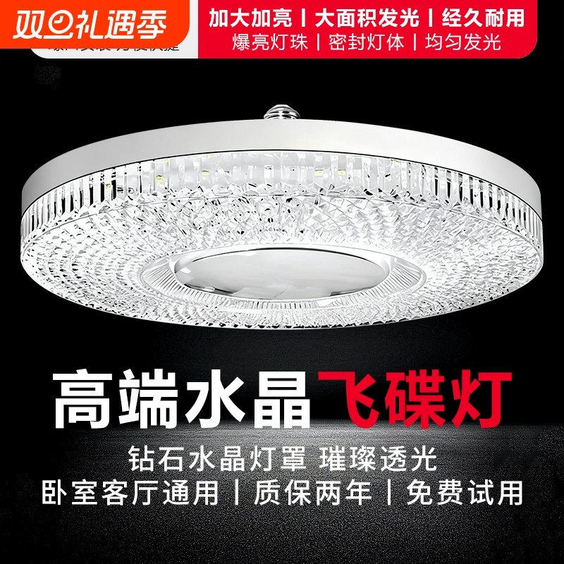 led圆形水晶飞碟灯e27节能水晶灯家用灯泡客厅卧室三色螺口护眼