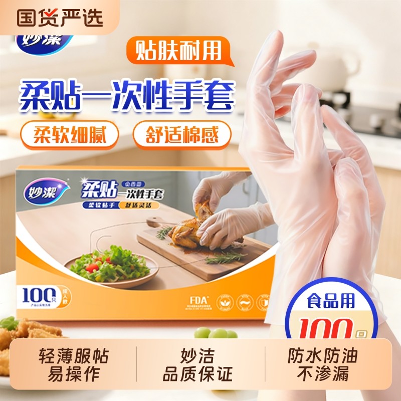 妙洁食品级专用一次性手套抽取式烘焙餐饮厨房加厚耐用防护手膜