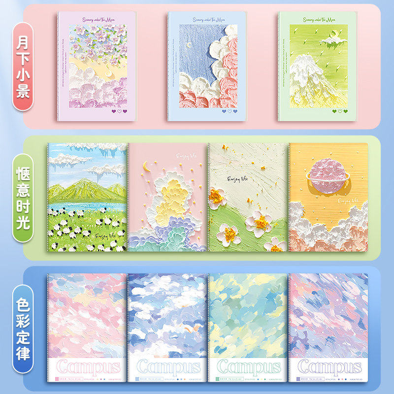 晨光B5活页线圈本不硌手横线笔记本子网格多规格A4可拆卸替芯加厚学生初高中生考研错题本ins风线圈本