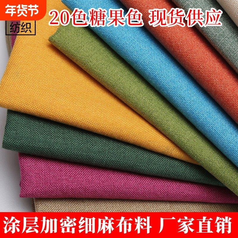 纯色细麻布仿亚麻布料箱包束口袋软包棉麻面料抱枕坐垫沙发透气