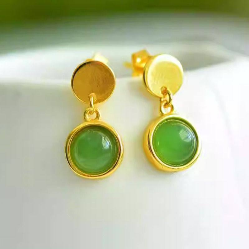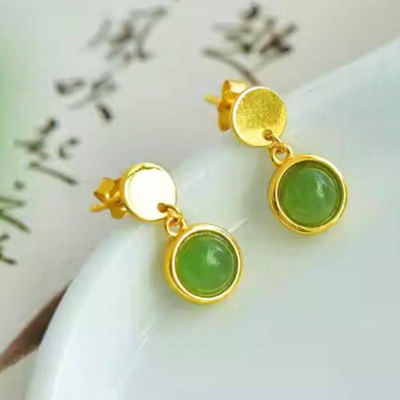 正品新疆和田碧玉耳钉925银镶嵌耳坠女玉石坠子精致质感礼带证书