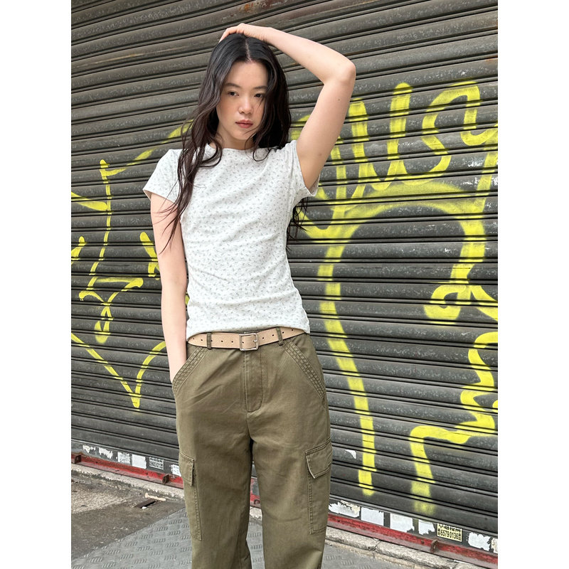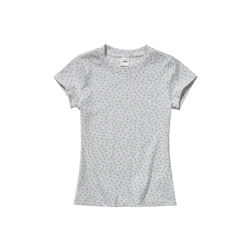 【清仓】UNRETRO甜酷辣妹美式碎花修身显瘦正肩短袖T恤女短款上衣