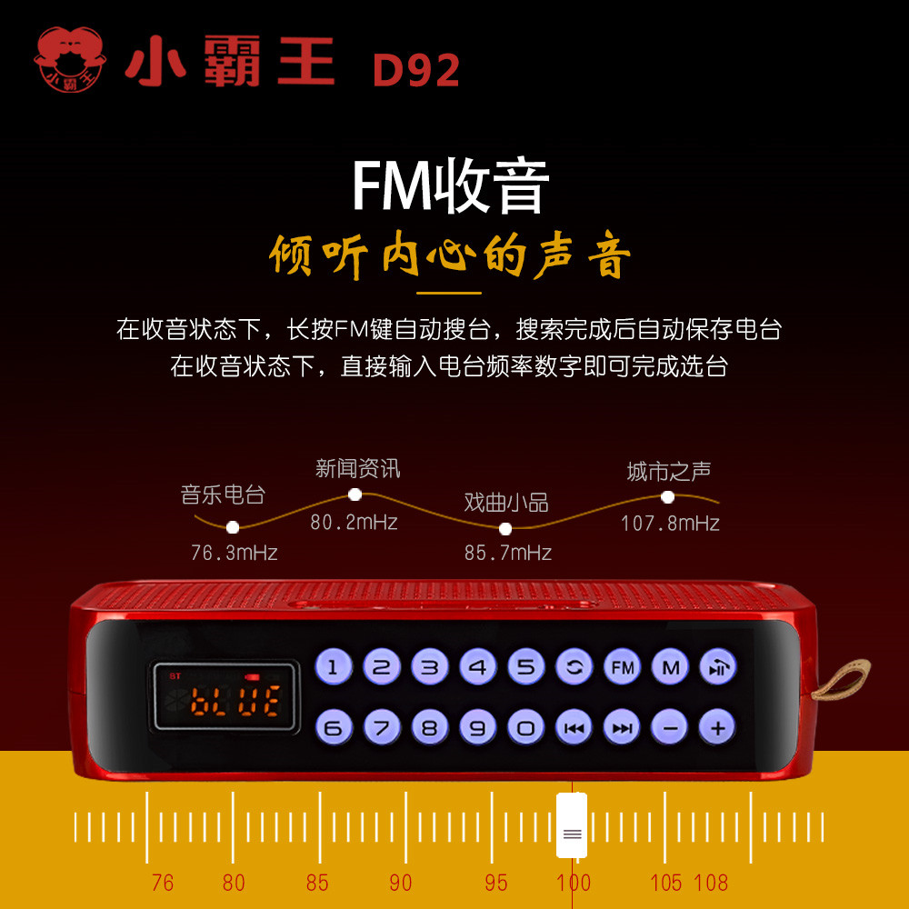 小霸王D92无线蓝牙音箱广场舞小型老人收音机播放器双喇叭大音量