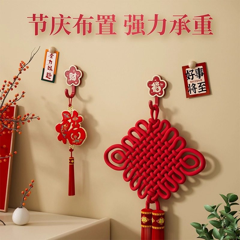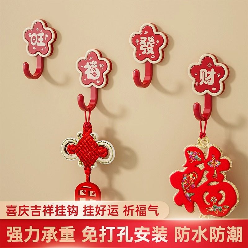 红色福字挂钩免打孔强力承重粘钩喜庆新年乔迁入户门厨房布置客厅