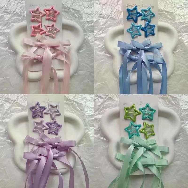 演唱会音乐节应援物 蝴蝶结编发 紫色和蓝色发夹 星星 套装粉色