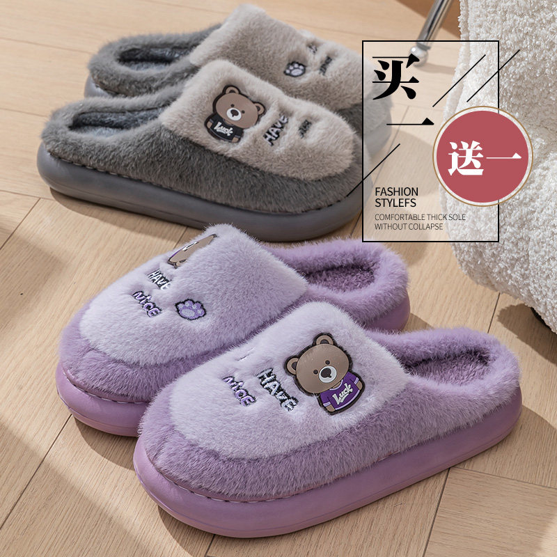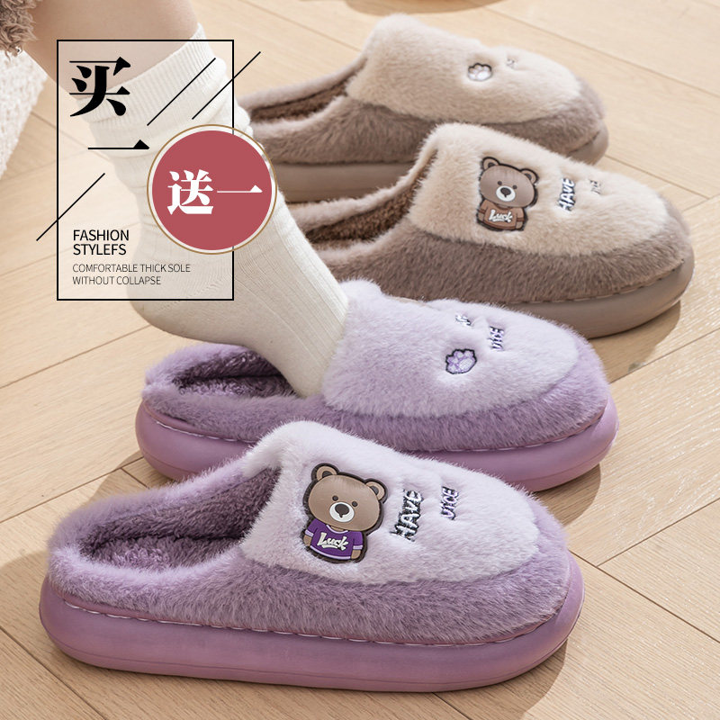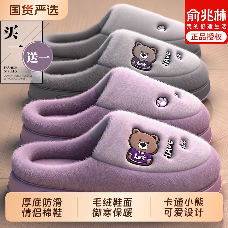 俞兆林买一送一棉拖鞋女款冬2025新款情侣家居一对厚底保暖拖鞋男