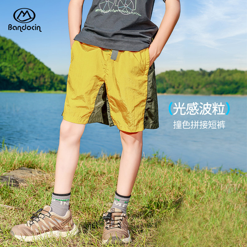 【珠光面料】半度闲男童运动五分裤夏季薄款透气儿童夏装拼接短裤