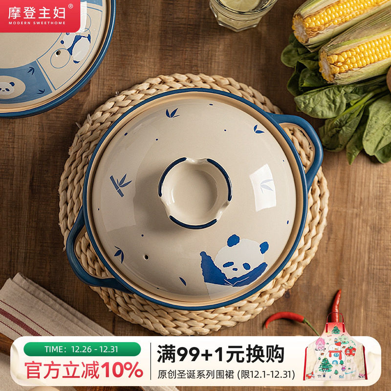 摩登主妇mototo熊猫砂锅耐高温干烧不裂家用燃气灶专用煲汤陶瓷锅