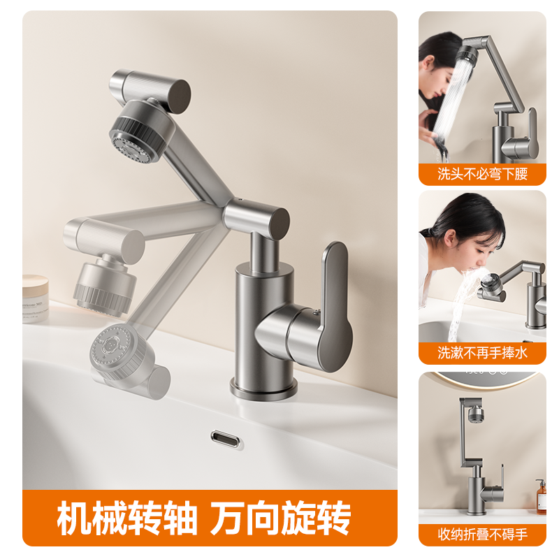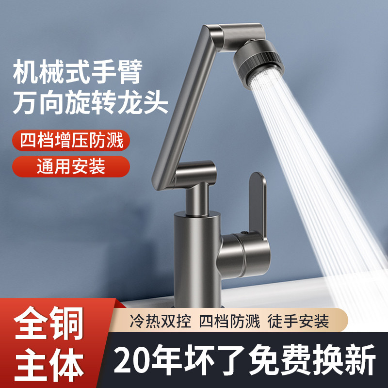 全铜洗脸面盆水龙头洗手盆厨房洗菜池卫生间单冷热万向机械臂防溅