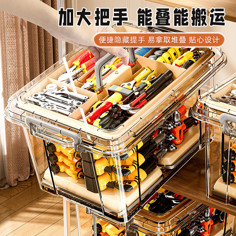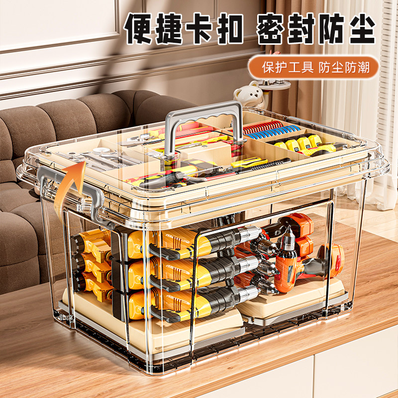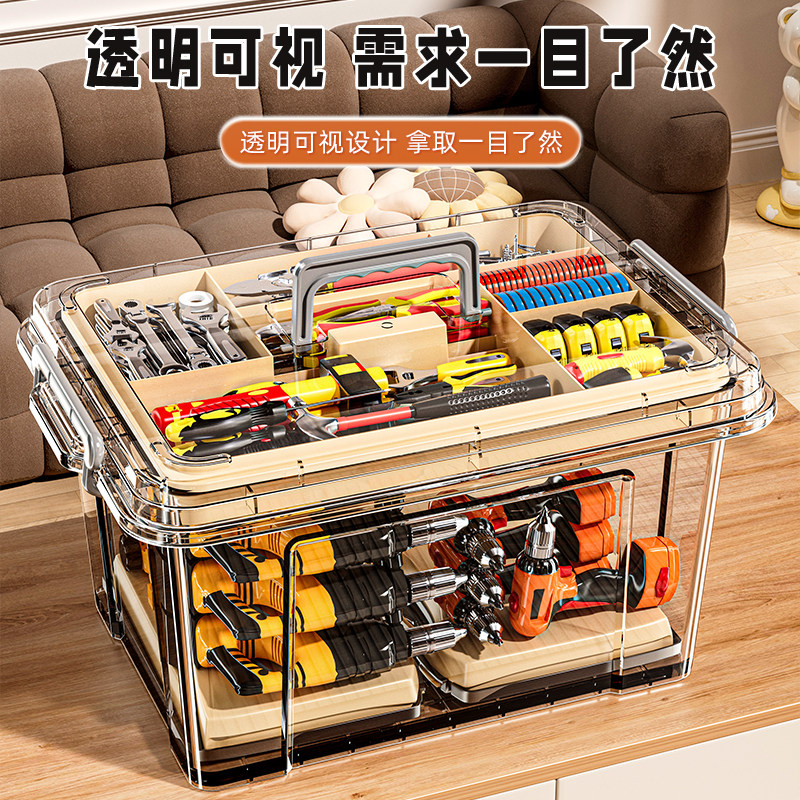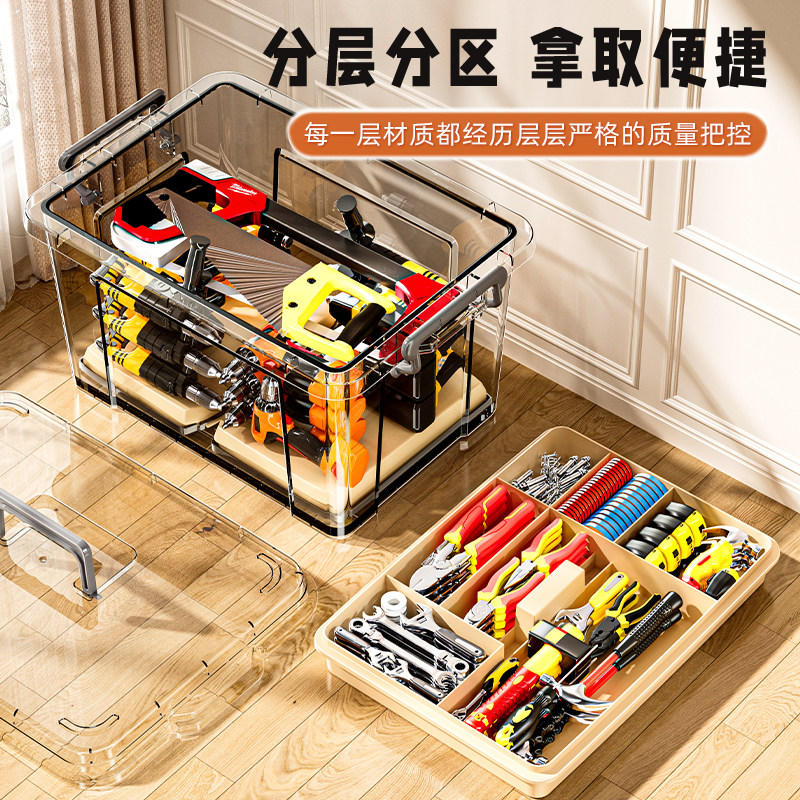 工具箱家用透明收纳盒多功能手提式零件杂物五金整理盒双层收纳箱