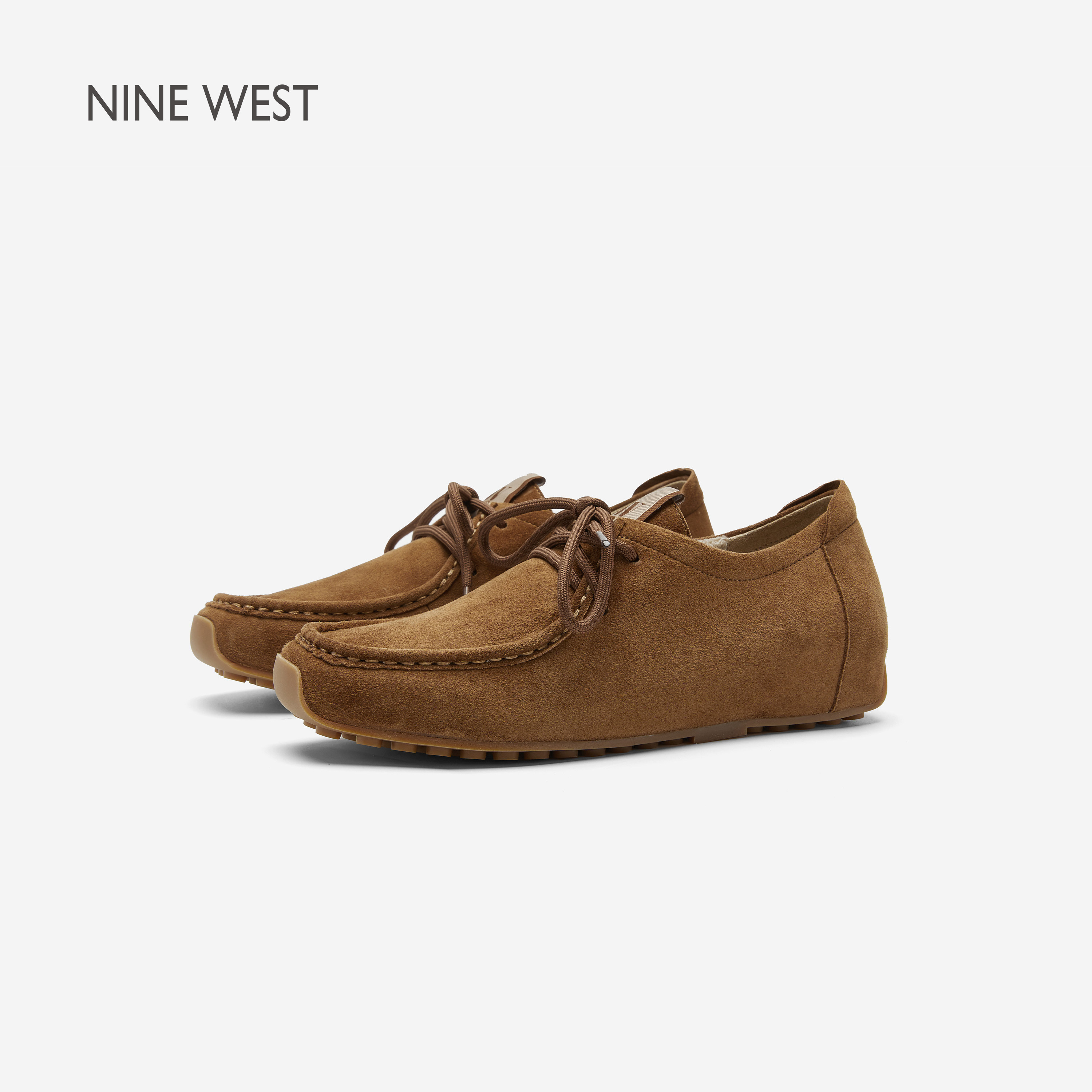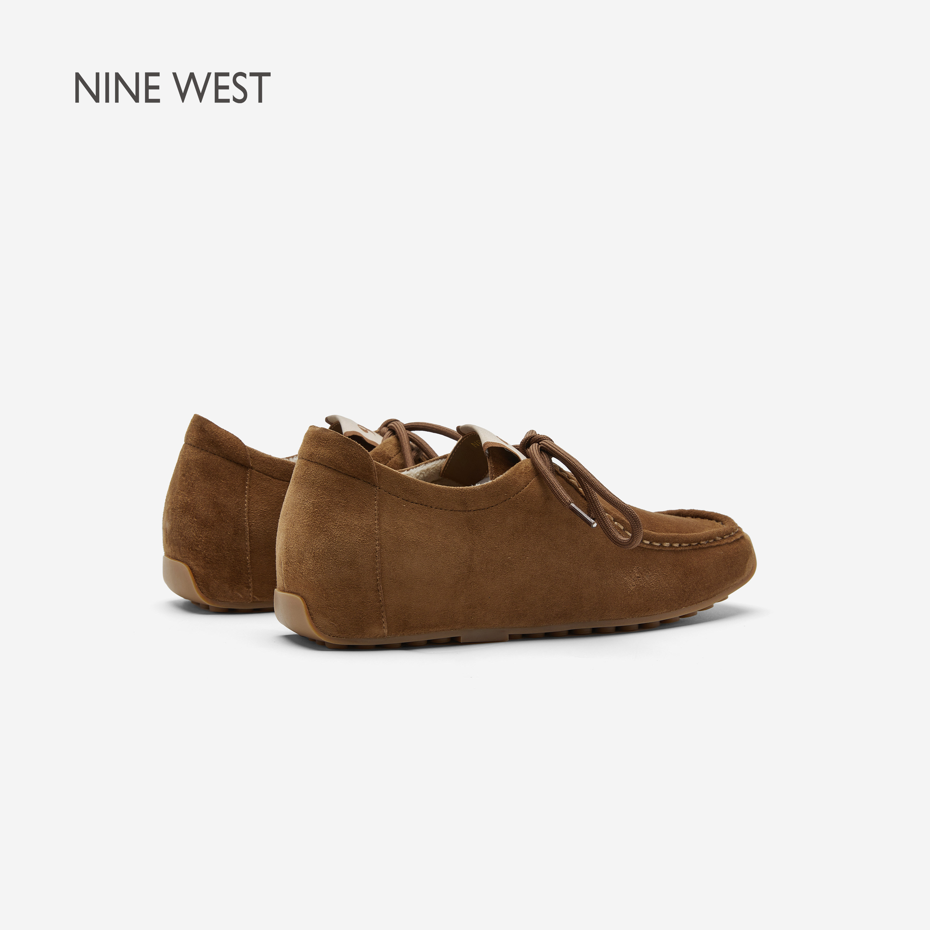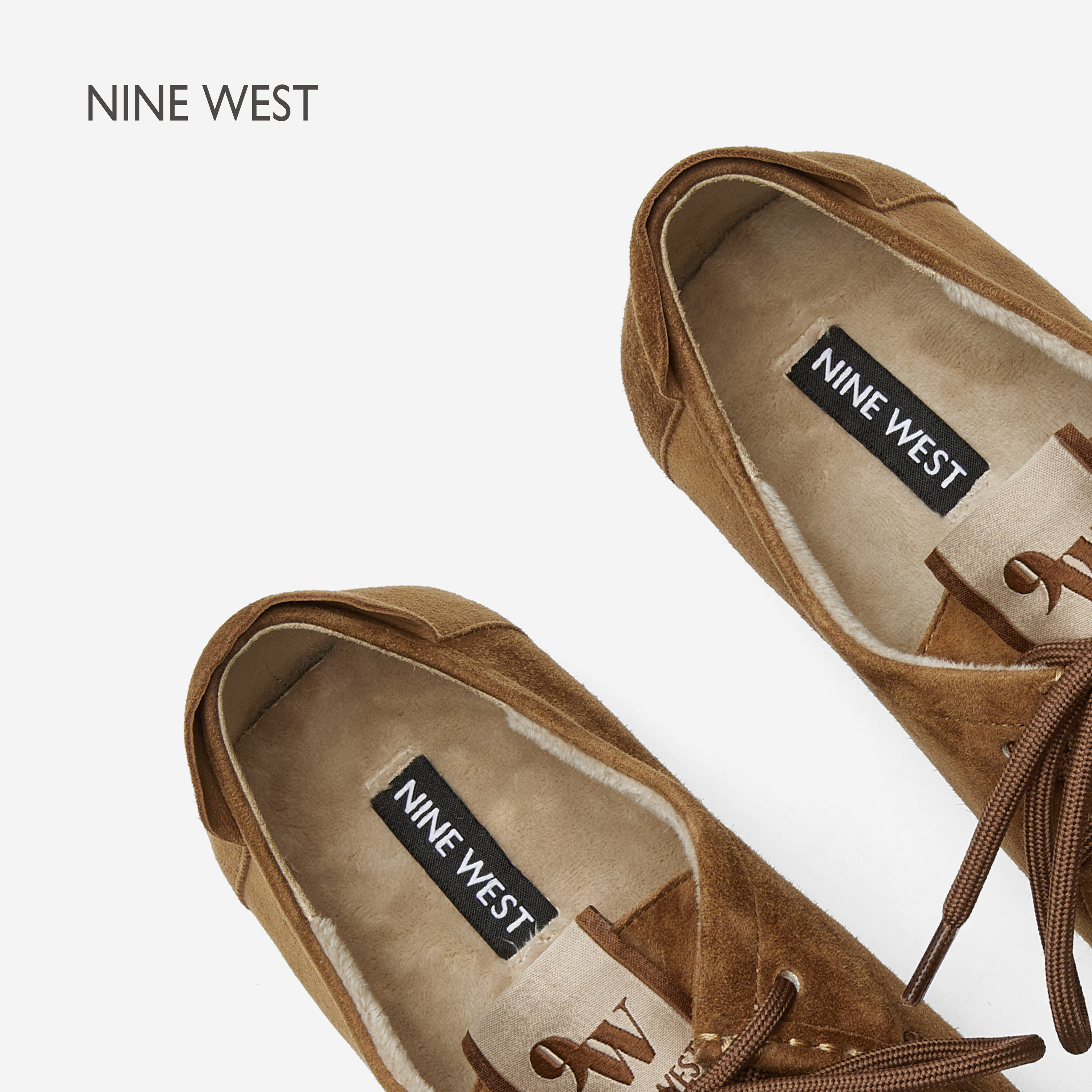 Nine West/玖熙内增高加绒女鞋2025秋冬新款平底豆豆乐福鞋袋鼠鞋