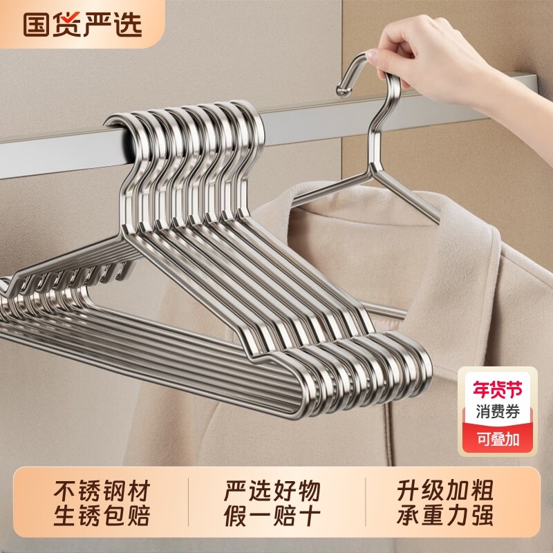 加粗不锈钢304衣架家用加厚凉晾衣撑架子铁晒无痕衣挂衣服的撑子