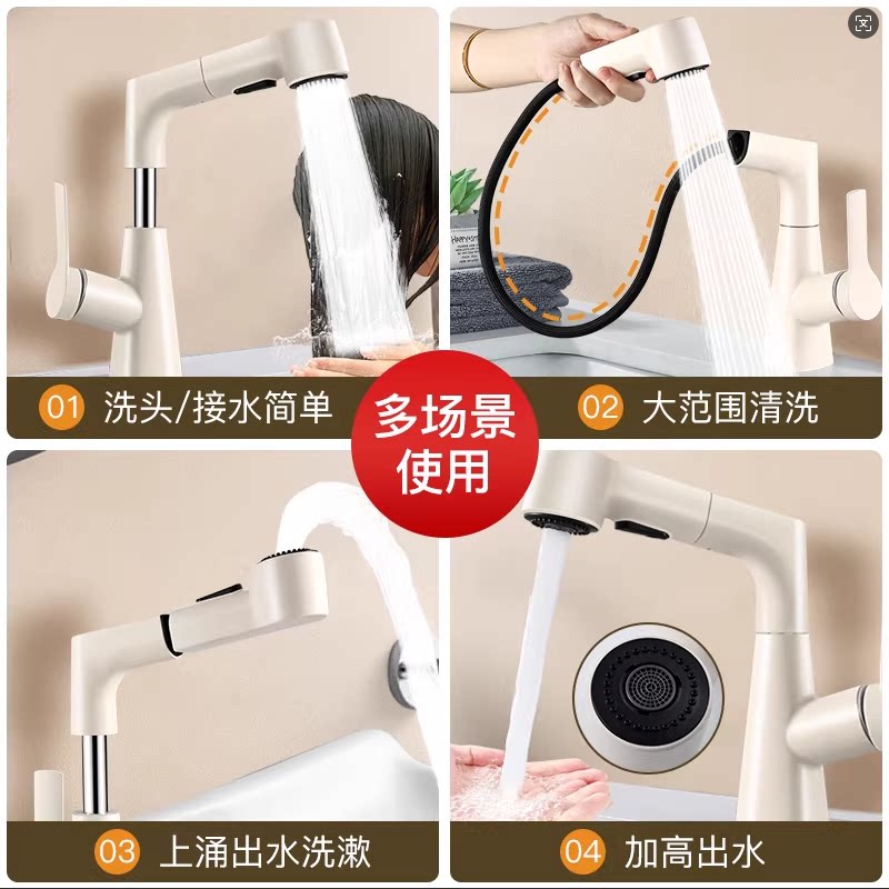 洗脸盆水龙头抽拉式冷热面盆洗手盆卫生间浴室台盆浴室柜升降家用
