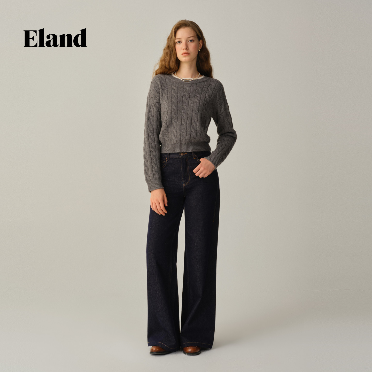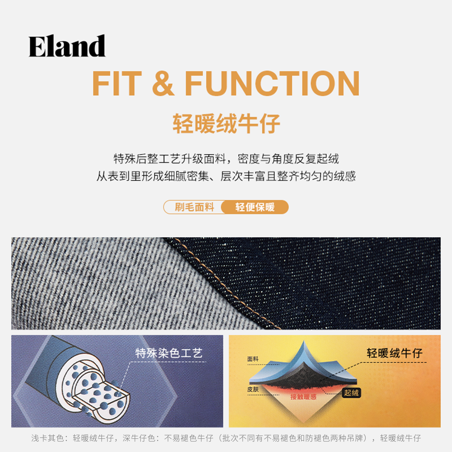 Eland衣恋牛仔裤女简约风通勤轻暖绒不易褪色直筒裤2026春季新款