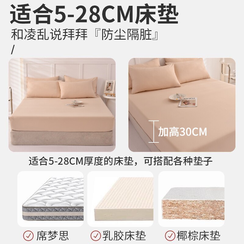 床笠罩单件床单纯色简约水洗棉床垫套床垫保护罩床罩防尘罩防滑套