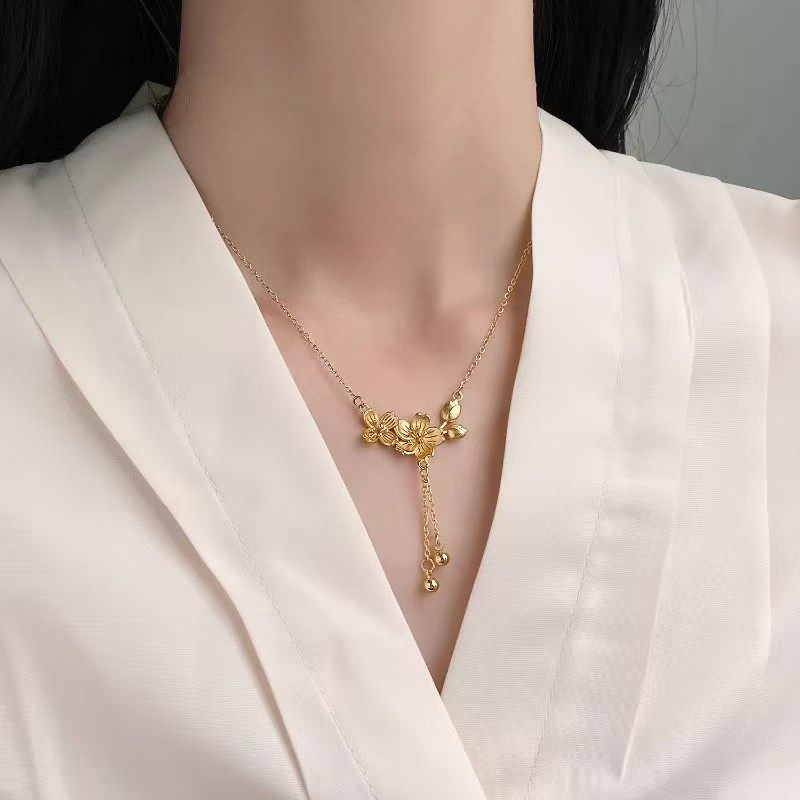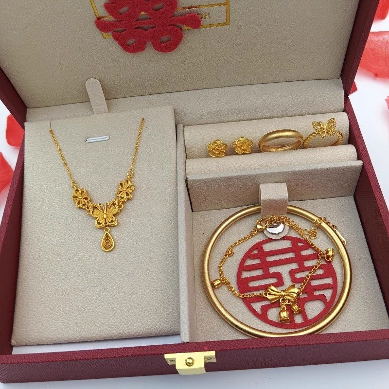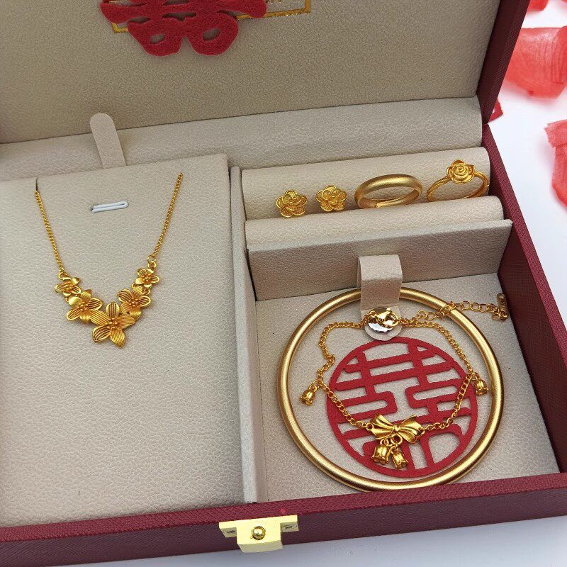 仿真结婚假五金首饰女流苏花朵项链女沙金一体婚嫁三金套装饰品