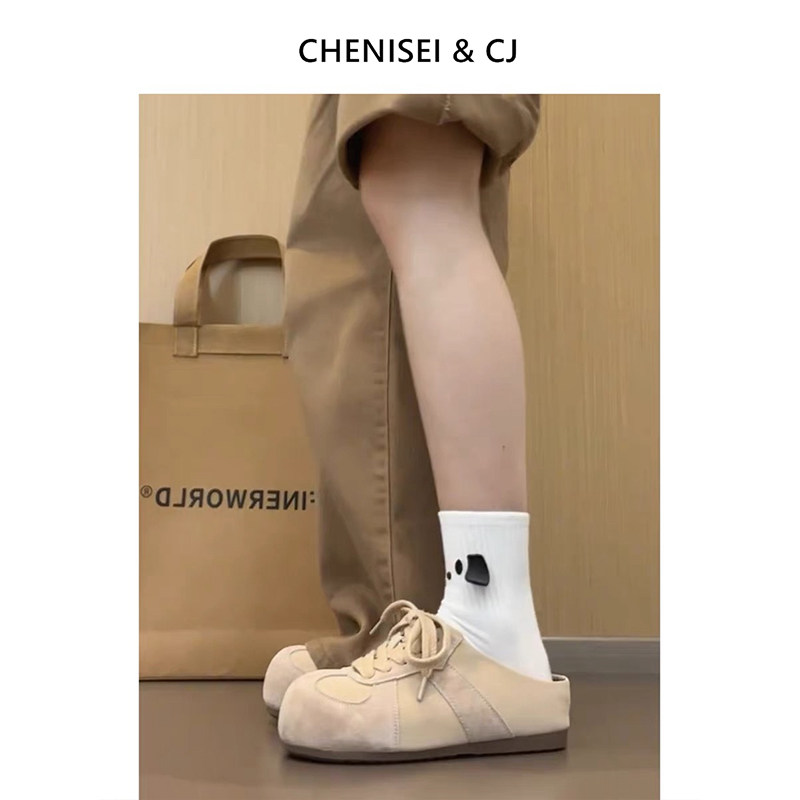 真皮包头拖秋季2025年新款勃肯鞋圆头拖鞋平底外穿休闲半拖懒人鞋