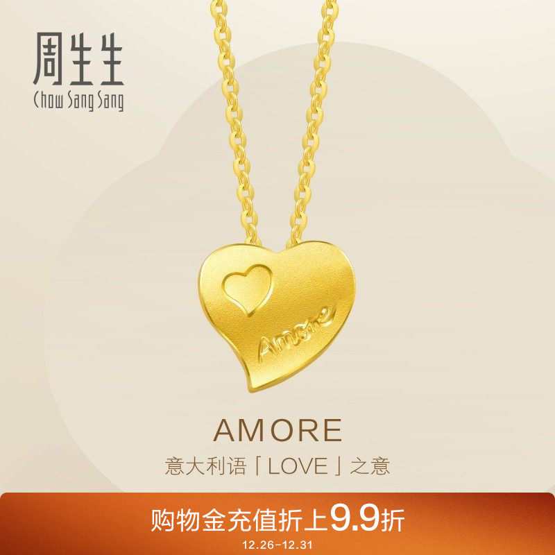 周生生Amore心形爱心黄金项链吊坠足金颈链套链78039U