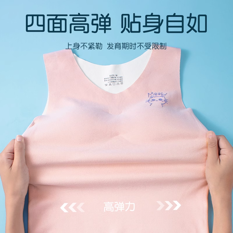 女童发育期内衣2025初中学生冬季内穿小学生保暖德绒蚕丝少女背心