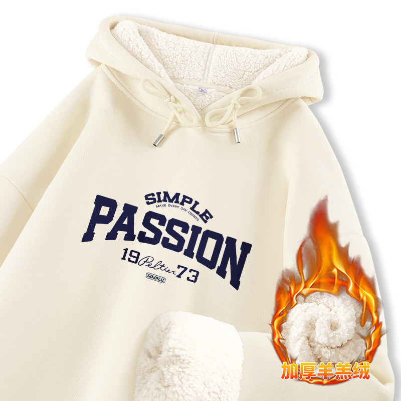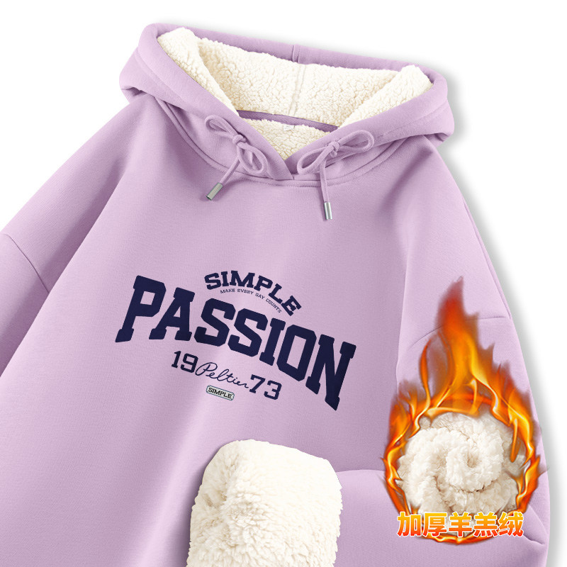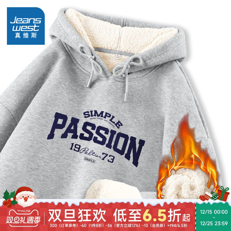 JR真维斯女装2025年冬季新款美式潮流字母印花羊羔绒连帽卫衣