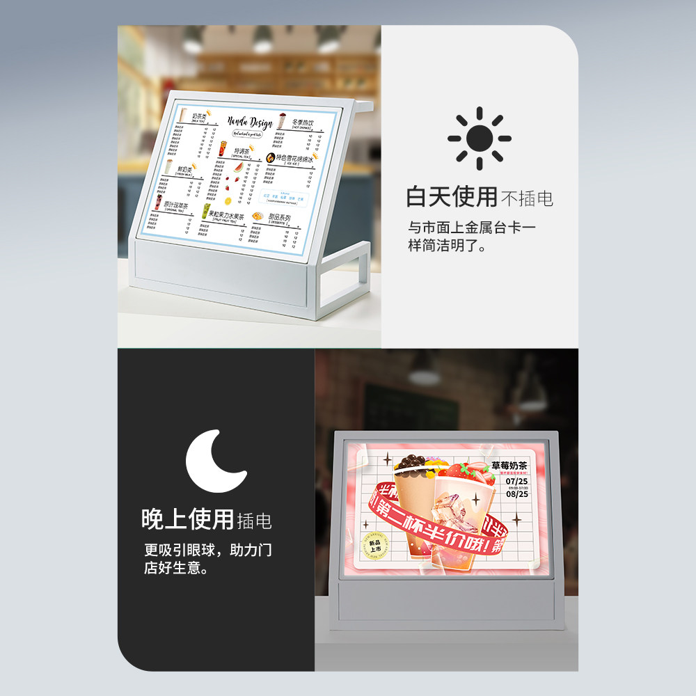 LED发光菜单展示牌 奶茶店灯箱点餐牌价目表设计桌面台卡A3广告