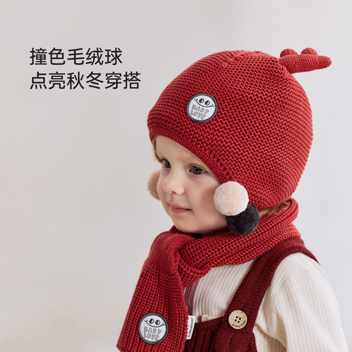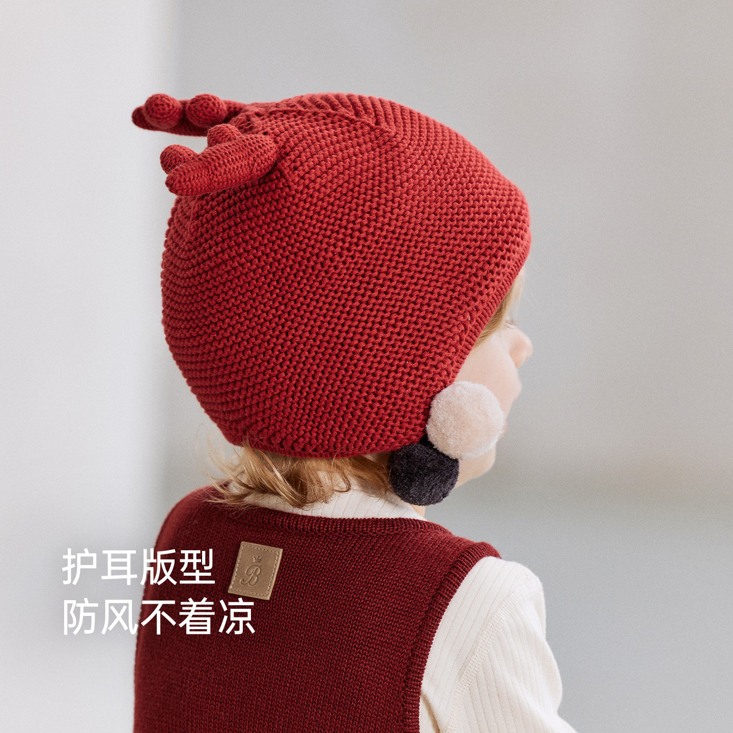 babylove婴儿帽子冬季纯棉针织圣诞毛线帽宝宝加厚加绒保暖护耳帽